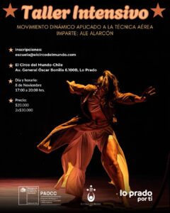 Taller intensivo “Movimiento Dinámico”, clase grupal dirigida por el performer y formador Ale Alarcón. Espacio que propuso nutrir el cuerpo desde la progresividad técnica y optimizando el rendimiento aéreo.