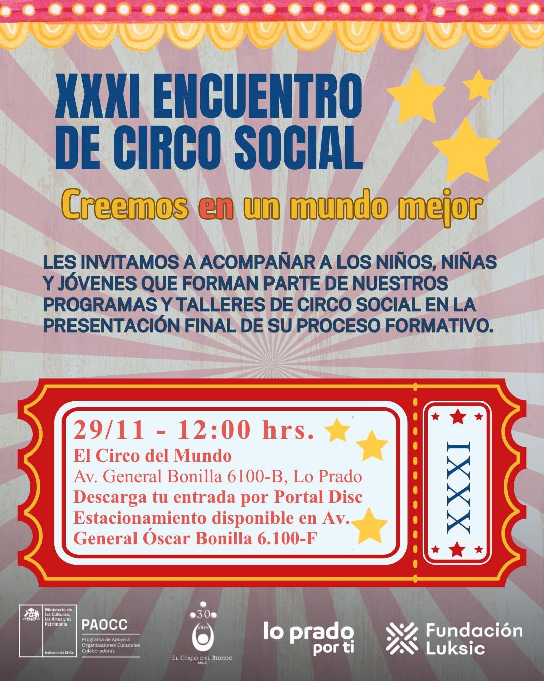 Este sábado 29 de noviembre nos reunimos en nuestra Carpa La Afortunada para celebrar el XXXI Encuentro de Circo Social: Creemos en un mundo mejor, donde niños, niñas y jóvenes presentaron el cierre de su proceso formativo.