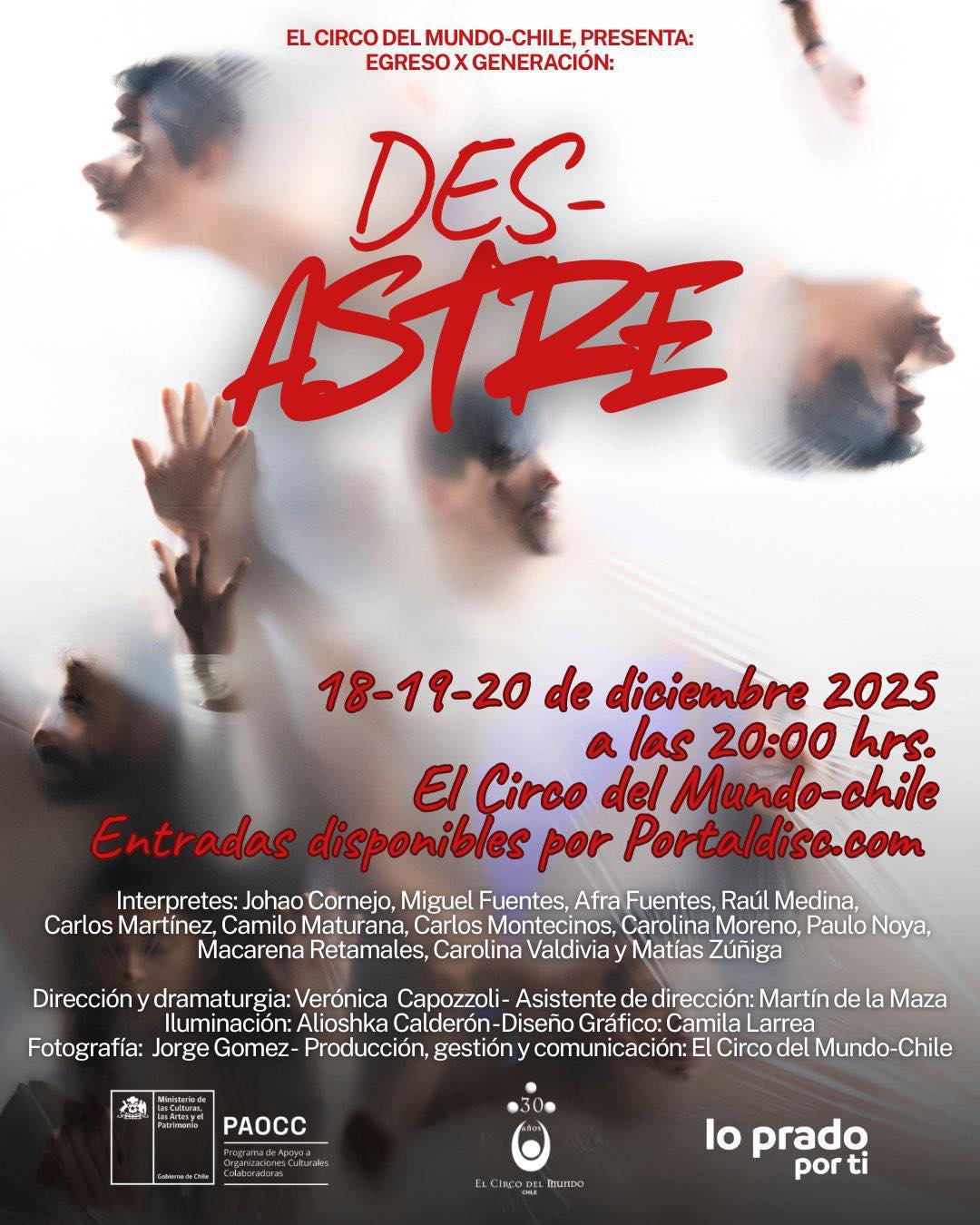 Obra: “Des-astre’’, creación colectiva del Egreso de la Décima Generación de la Escuela de Artes Circenses de El Circo del Mundo-Chile.